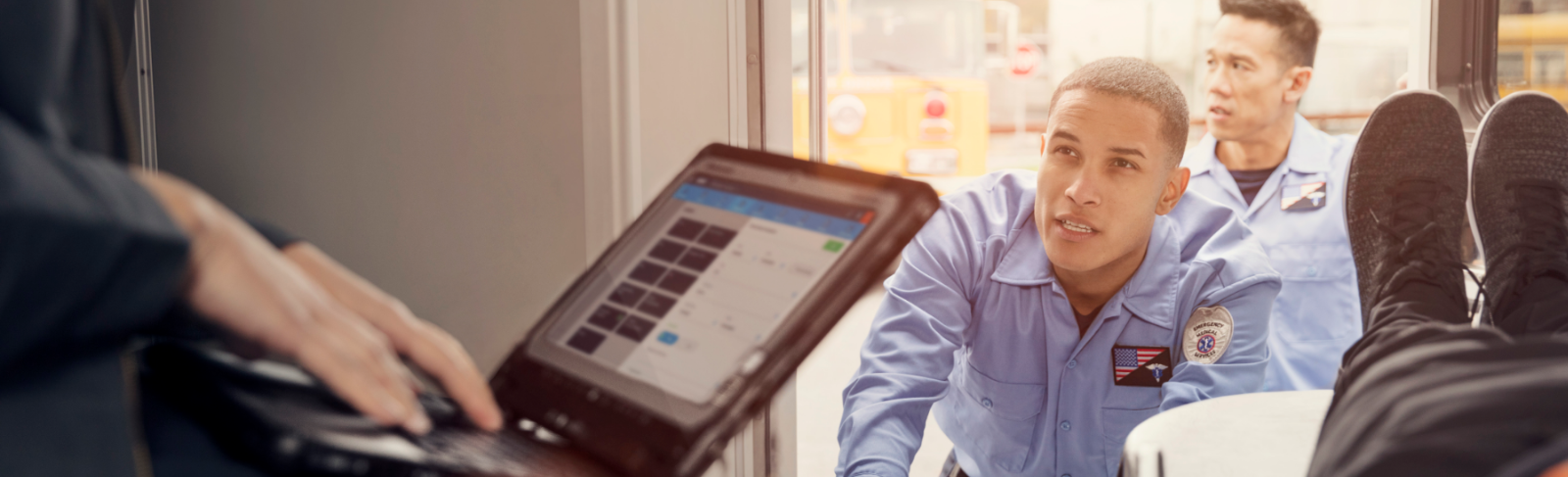 Rugged mobile tablets and laptops with integrated antennae modules and shock-mounted hard drives can withstand vibrations and shocks, and they help ensure that EMTs can reach dispatch and access and communicate critical patient data with medical facilities.